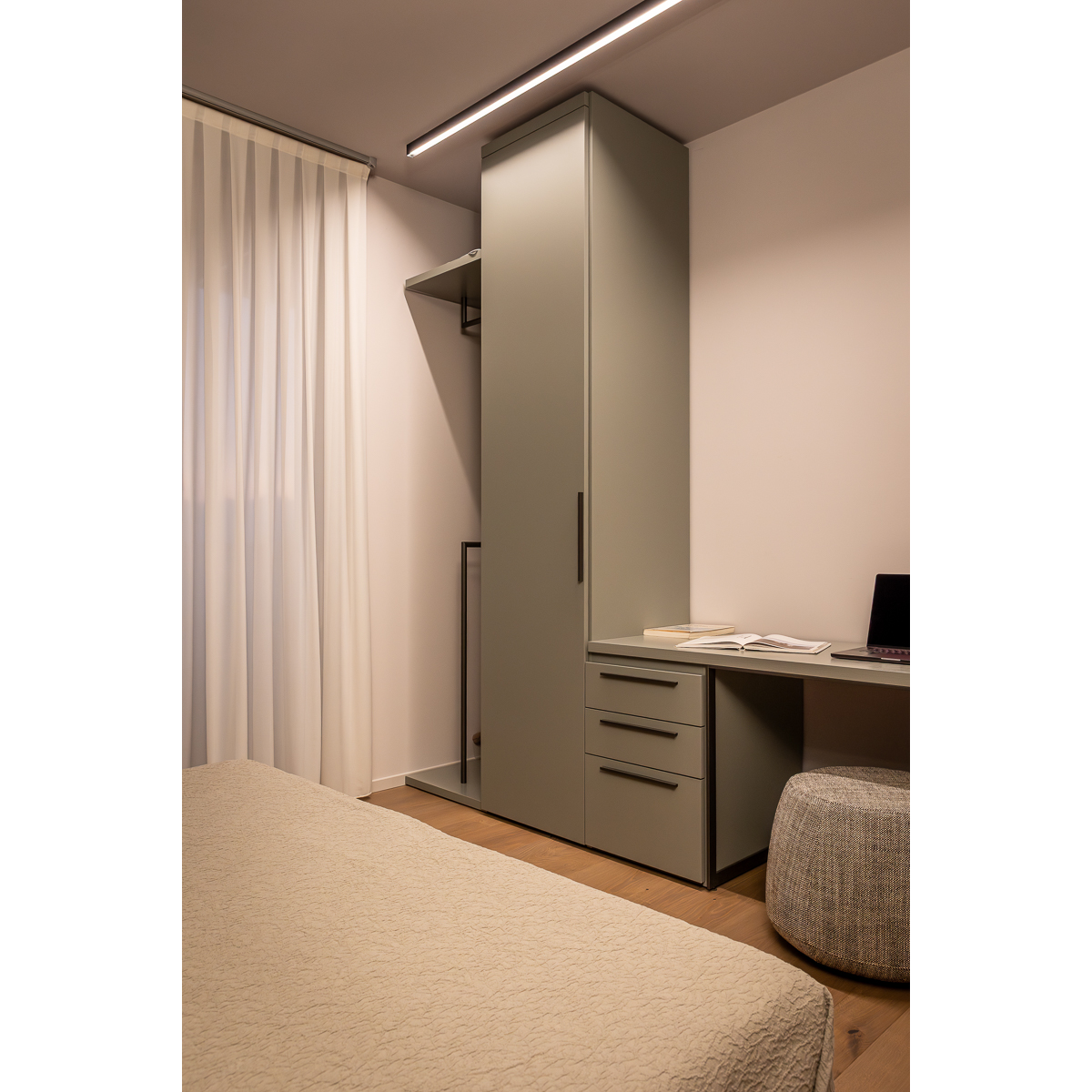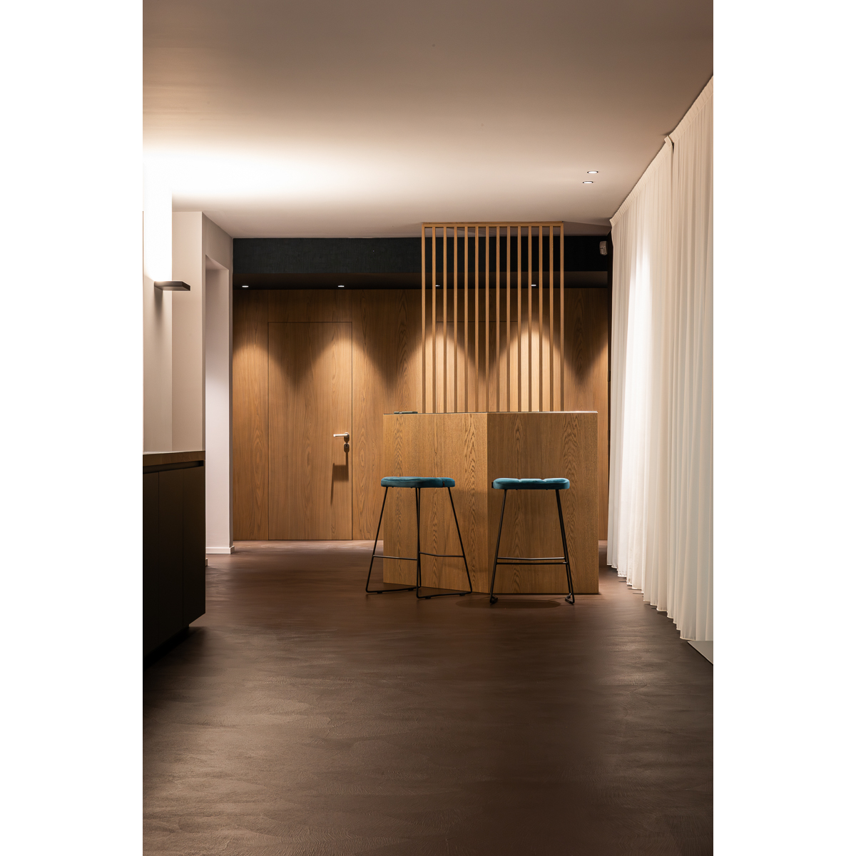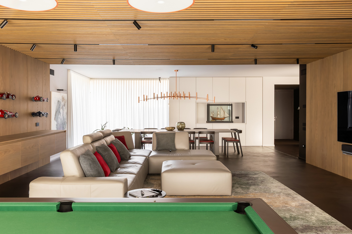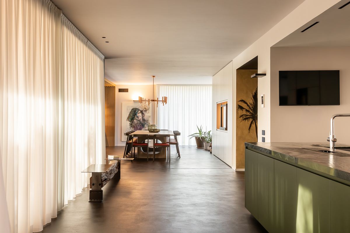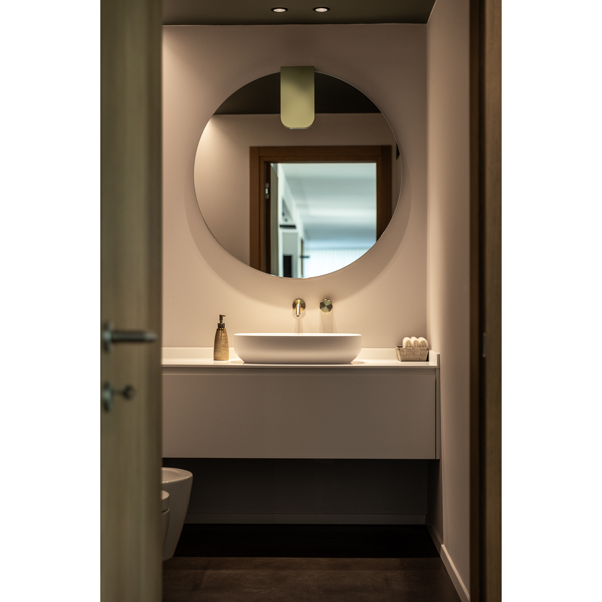 Un progetto che nasce dalla collaborazione con lo studio dell’ing. Cristian Lievore per la direzione artistica mirata all’aspetto esterno dei volumi architettonici e che si sviluppa poi in un percorso completo di interior design, dove ogni dettaglio è stato pensato per creare una casa contemporanea dal carattere mediterraneo in un dialogo profondo tra spazio e vissuto. L’architettura esterna si staglia contro il cielo con linee pure e superfici candide che catturano la luce, trasformandola in un gioco continuo di ombre e riflessi. All’interno, gli spazi si aprono in una sequenza fluida dove il legno caldo abbraccia le pareti, il rame delle luci disegna geometrie aeree e i pavimenti raccontano la terra.