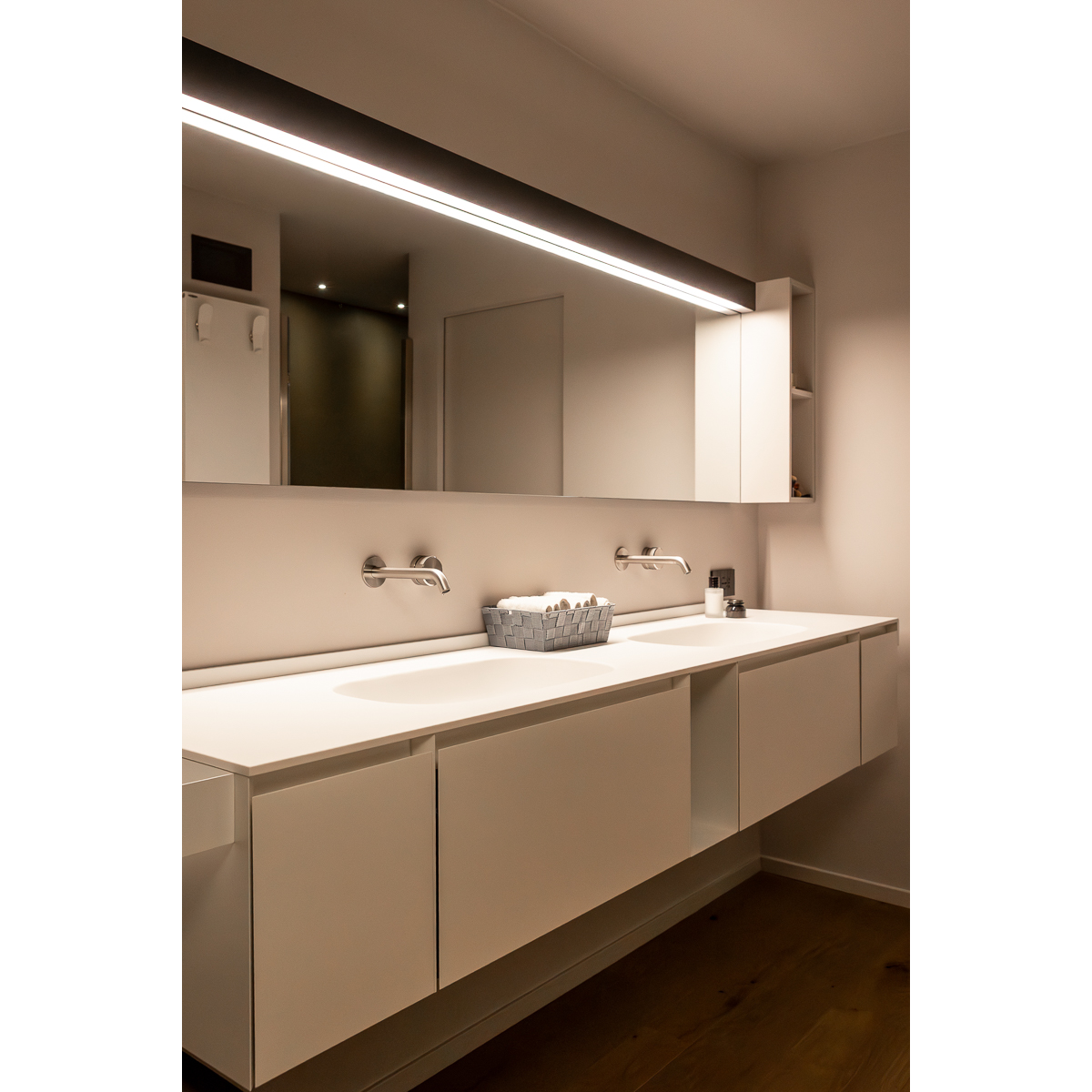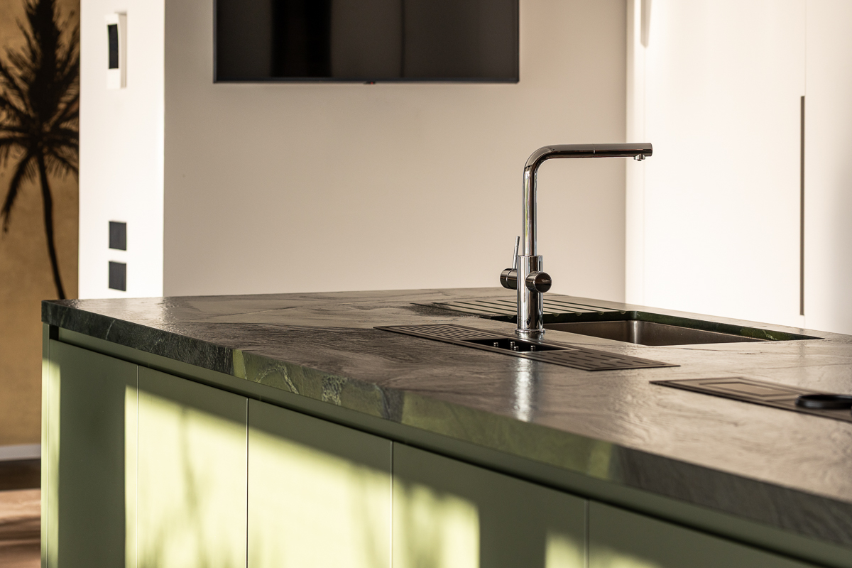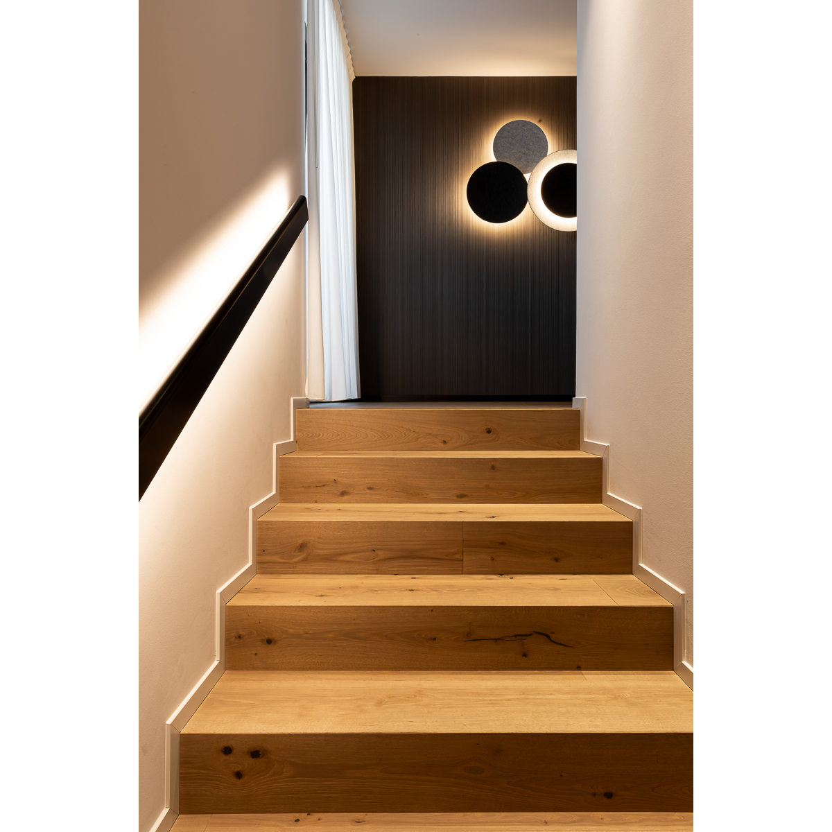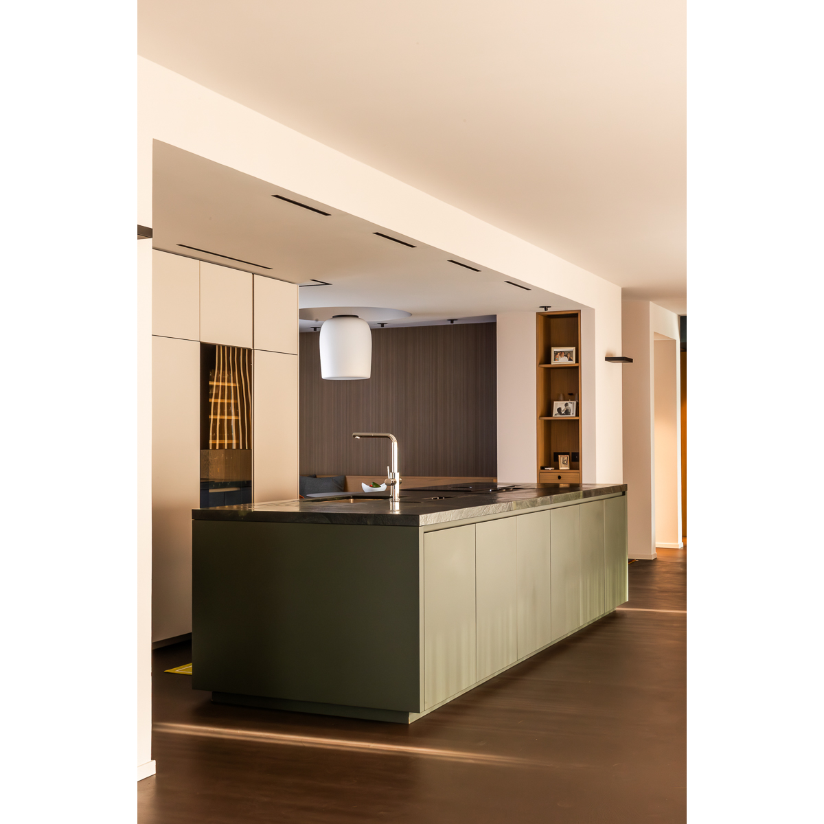 Un progetto che nasce dalla collaborazione con lo studio dell’ing. Cristian Lievore per la direzione artistica mirata all’aspetto esterno dei volumi architettonici e che si sviluppa poi in un percorso completo di interior design, dove ogni dettaglio è stato pensato per creare una casa contemporanea dal carattere mediterraneo in un dialogo profondo tra spazio e vissuto. L’architettura esterna si staglia contro il cielo con linee pure e superfici candide che catturano la luce, trasformandola in un gioco continuo di ombre e riflessi. All’interno, gli spazi si aprono in una sequenza fluida dove il legno caldo abbraccia le pareti, il rame delle luci disegna geometrie aeree e i pavimenti raccontano la terra.