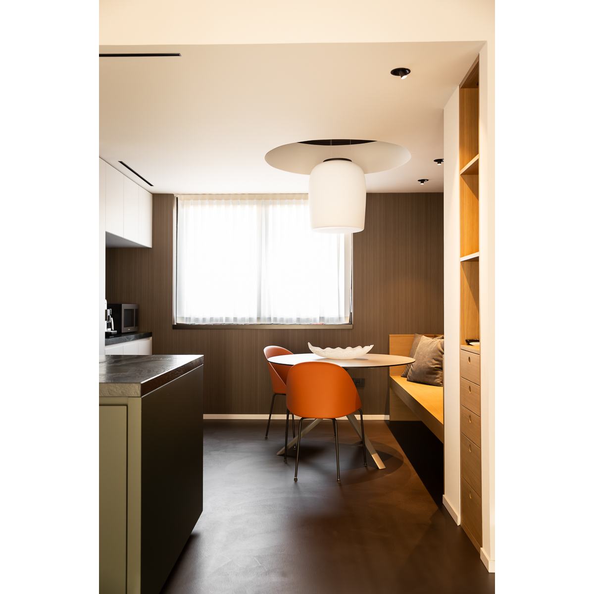 Ogni arredo è stato pensato, disegnato e realizzato da mani sapienti appositamente per questo luogo. La luce, protagonista silenziosa, accarezza le superfici, si nasconde negli angoli, esplode in elementi scultorei sospesi nel tempo.